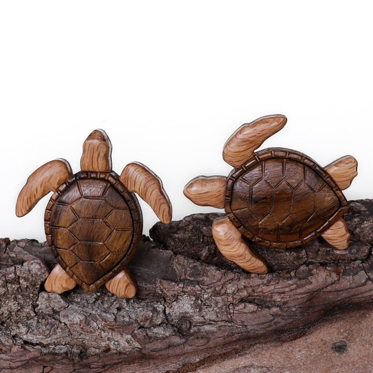 Sea Turtle (Bird's eye view) Wood Carved Intarsia Ornament / Magnet