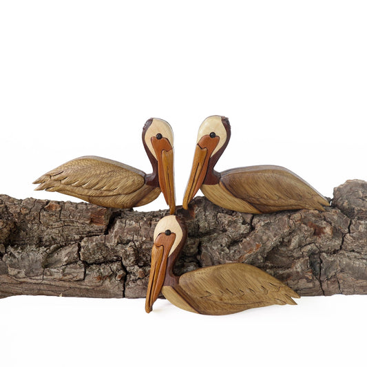 Brown Pelican Wood Carved Intarsia Ornament / Magnet