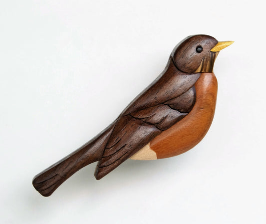 Robin Songbird Wood Carved Intarsia Ornament / Magnet