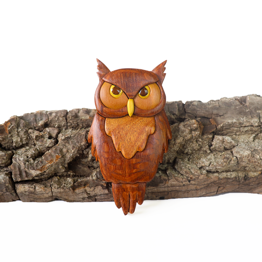 Great Horned Owl Wood Carved Intarsia Ornament / Magnet