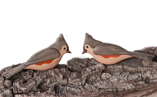Tufted Titmice Wood Carved Intarsia Ornament / Magnet