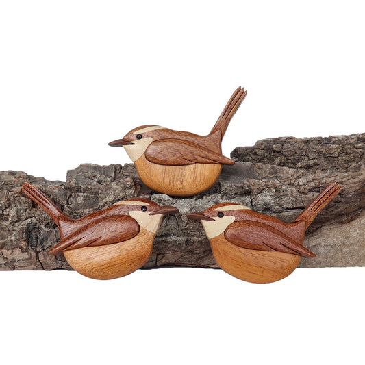 Carolina Wren Wood Carved Intarsia Ornament / Magnet