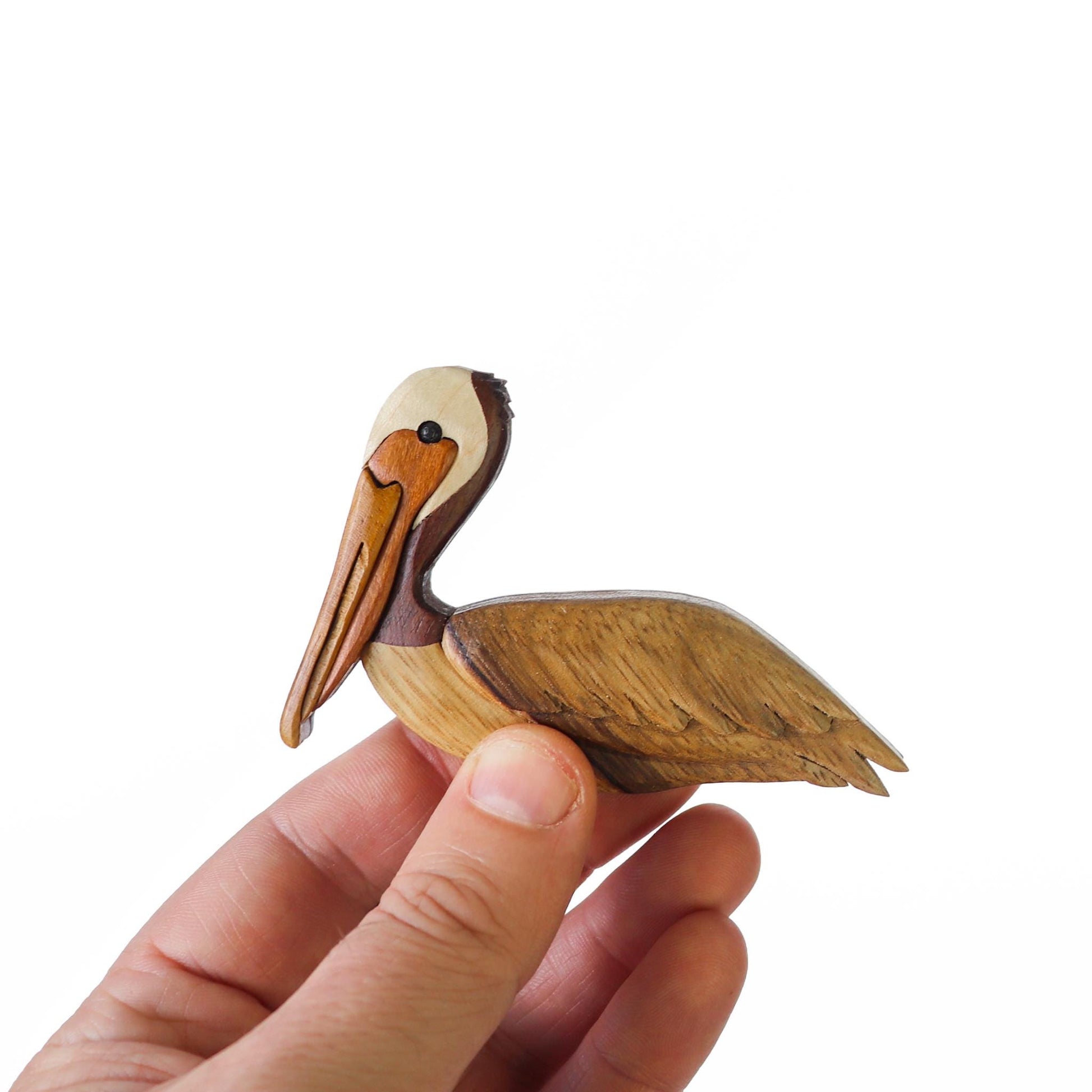 Brown Pelican Wood Carved Intarsia Ornament / Magnet