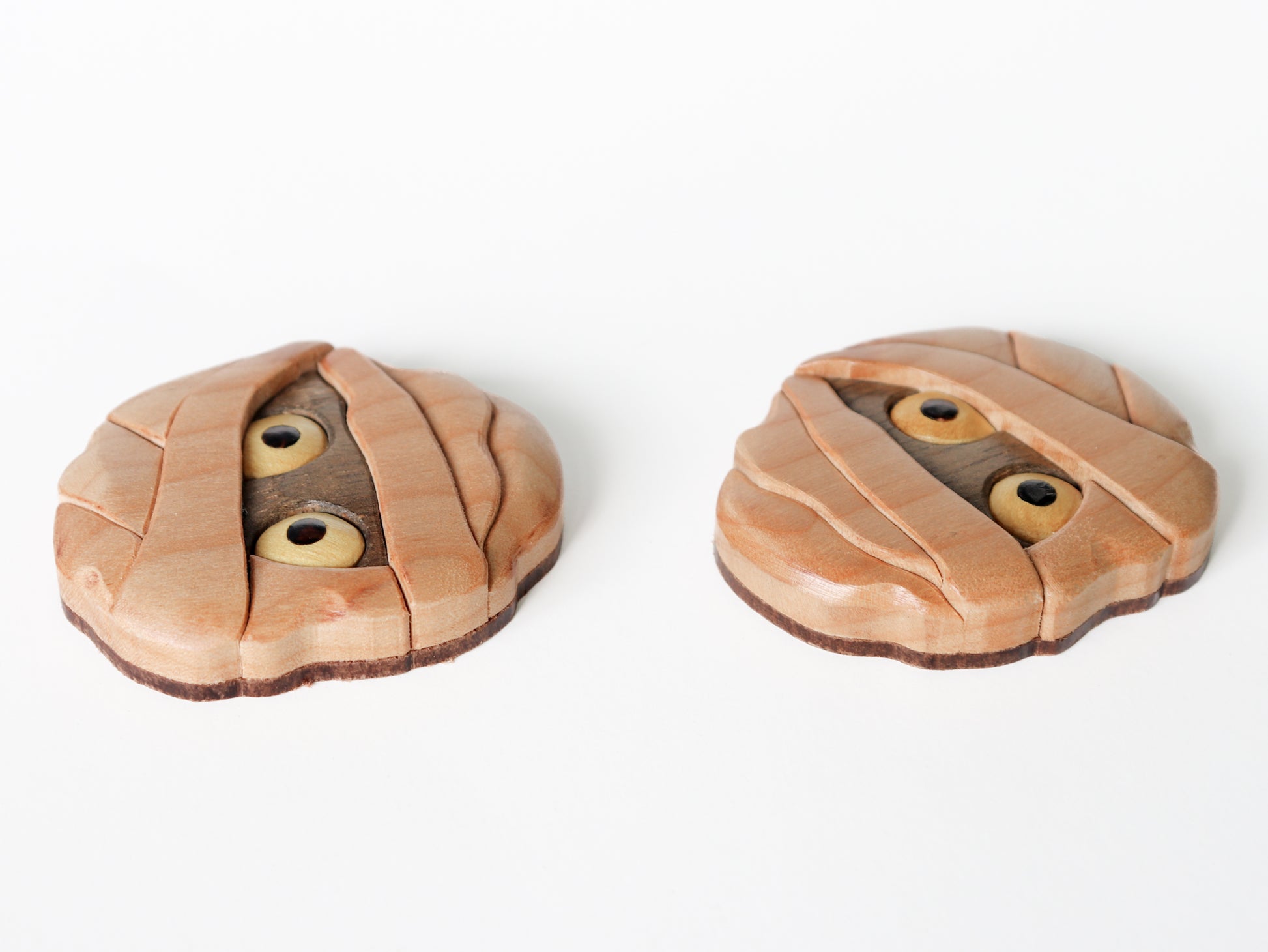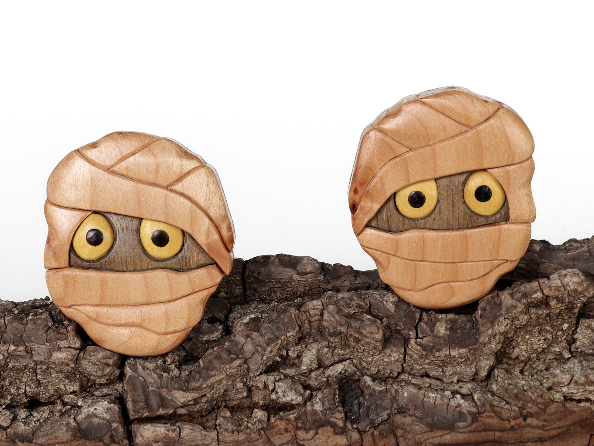 Introducing our charming intarsia wood carved magnet / ornament, featuring a Cute Egyptian mummy. 🎃 These unique monstrous creations are meticulously handcrafted from all natural wood, showcasing the intricate art of intarsia woodworking. Each segment is carefully selected and skillfully cut, carved, and assembled to create the perfect Haloween themed decoration.