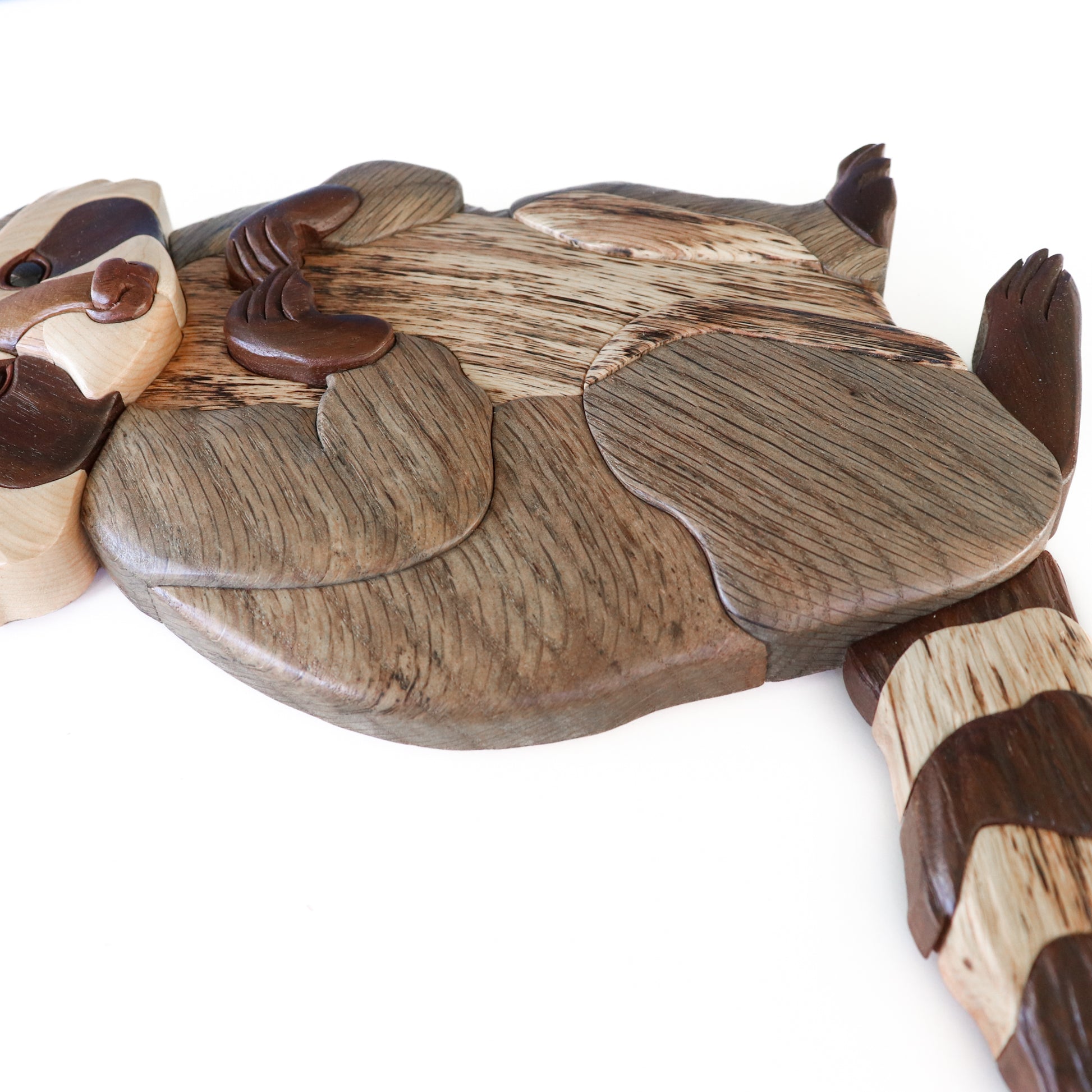 This charming Raccoon Wall Hanging shows off its expert craftsmanship in intarsia woodworking, making it a must-have for sprucing up your abode. Ideal for nature lovers, this standout creation features an endearing raccoon. Infuse your décor with some forest fun with this MADE TO ORDER, one-of-a-kind masterpiece.