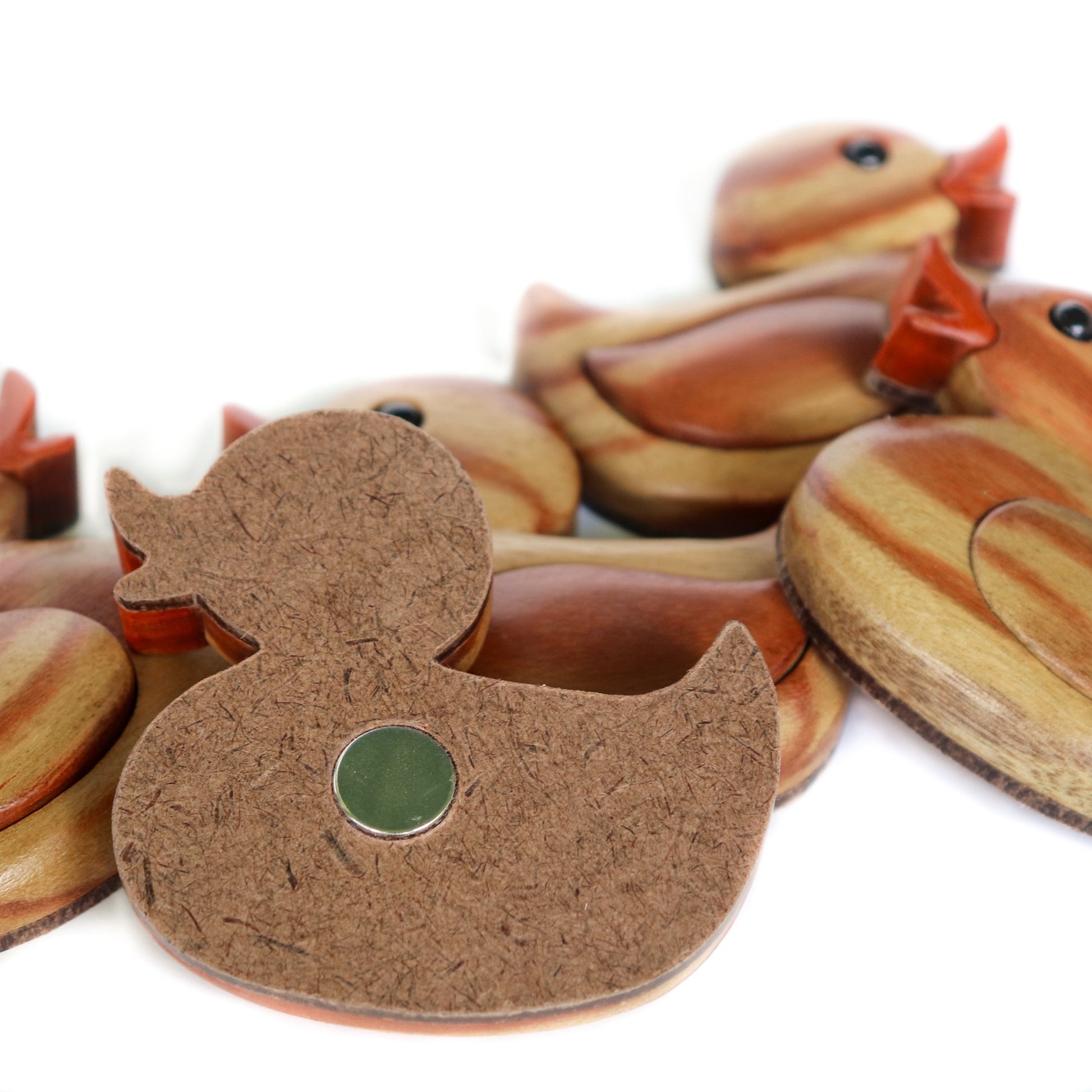 Add a touch of joy to your home with this charming Rubber Duck Intarsia Wood Carved Magnet/Ornament. This little duck is sure brighten up your space and bring a smile to your face!